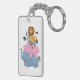 This acrylic keychain is shown with a cartoon animal buddies print.
