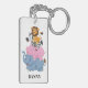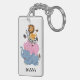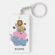This acrylic keychain is shown with a cartoon animal buddies print.