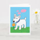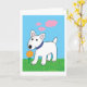 Cartoon Bull Terrier Dog w Flower Greeting Card