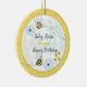 Cartoon bumblebees on a background of blue, yellow ceramic tree decoration
