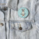 Funny button featuring a cartoon illustration of a cute rabbit skull and crossbones as carrots on teal.