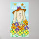 Bunny rabbit in his red floppy country hat was drawn in pencil then scanned into the computer where it was colourized.