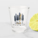 Need a little mental escape to decompress from the daily grind? Why not go off-the-grid and head out into the woods and sleep under the stars. This whimsical cartoon camping shot glass features a pup tent pitched under tall pine trees in front of a cosy campfire with swirling wisps of smoke.