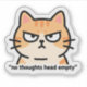 Funny and absurd internet meme illustration featuring a cartoon cat with a blank stare, captioned "no thoughts head empty".