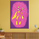 Dream swimmer cartoon creature in yellow and pink background color. Cute home decor, kids room wall art.