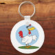 A cartoon style chicken posing wearing a beret. This design looks really effective on these Keychain