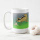 A cute design featuring little cartoon chipmunks sneaking up on strawberry ice cream cones. A playful animal design with a shaded background of green and blue with a brown border to make the chipmunks stand out. Customize this mug as desired.