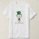 Add your holiday wish to this fun cartoon Christmas elf t-shirt. AI-generated cartoon wearing a broad smile and a green top hat.
