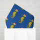 A drawing of a cartoon seahorse fish wearing a Santa Claus hat and a Christmas themed scarf.