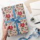 A gift wrap design with cartoon pattern of Santa Claus, reindeers, gift boxes, and Christmas tree. This product is great for Christmas gifts and for gifts to children.