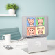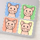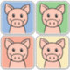Cartoon clip art with four smiling pigs inside squares with different colours.