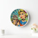 Cartoon Comic Pop Art Women Holding Cat Clock