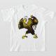 The t-shirt feels and looks great quality, a good thick cotton. It will be a little big for my son, but that means he will be able to wear it and not out grow it too soon. The print was as described on the order when personalised. True size, shape and colour T-shirt- thanks.