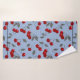 Cartoon cute red cherry berry green leaves blue ba bath towel set