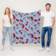 Cartoon cute red cherry berry green leaves blue ba fleece blanket