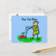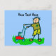 Cartoon Drawing Man Mowing Grass Postcard