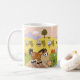 cute cartoon farm animals in the landscape. Children illustration for little kids