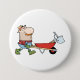 Show off your love of country life with this cartoon farmer button. Featuring a cheerful farmer pushing a wheelbarrow full of tools, this fun design is perfect for adding to jackets, backpacks, or hats. A great little accessory for gardeners, farmers, and anyone who enjoys lighthearted rural humour. Makes a thoughtful and playful gift or party favour.