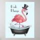 Step into a world of sophistication with our 'Posh Plunge' poster featuring an elegant flamingo enjoying a luxurious bath. This whimsical artwork blends charm and style, celebrating both grace and playfulness.