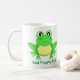 Cute green cartoon frog. Frog lovers start the day the good 'frogging' way. Fun gift for yourself or a friend. Keep text or change it to your own saying. Add your name or again change the text to your own liking. If you need some help transferring the design to another product please send me an email designsbykatz@gmail.com