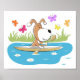 This Poster features a cartoon illustration of funny Puppy kayaking along the grassy river shore. Happy doggy and his kayak are surrounded by colorful butterflies. Designed in warm summer colors. Great poster for water sports fan, especially if he or she is a dog lover.