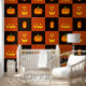 Cartoon Funny Pumpkin Faces Halloween Pattern. Great for an accent wall. Perfect for a temporary Halloween Haunted House, Theater, Toy Room, lovers of all things Halloween.