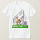 This is a fun cartoon style design of a goalkeeper. This goalkeeper has a mean determined look on his face as he stands in the soccer goal. The funny thing is he is holding a net to try and stop the balls but has failed as there is several soccer balls behind him. This cartoon goalkeeper design looks great on this mens t-shirt. Perfect for yourself or as a gift