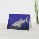 A smiling Great White Shark greeting card, featuring original cartoon art of a shark swimming underwater, along with bubbles and seaweed. Send this card to kids and adults who love sharks, because sharks are awesome!