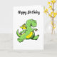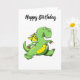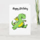 Cartoon green dragon walking on his back feet card