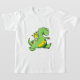 Cartoon green dragon walking on his back feet. With a smile on his face happy go lucky.. Let this entertaining humourous kids design do the talking for you.