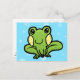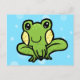 featuring and adorable digital illustration of a little smiling green cartoon frog with yellow cheeks covered in speckles.
