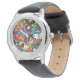 The leather band makes it seem like an “older kids” watch.   Easy to read the time. Clear printing and image.
