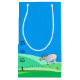 Original cartoon comics illustration of a water buffalo + Year of the Ox, Chinese ideogram for Ox and 2021 on stylised landscape. Design on small gift bag. You can easily change position and size of the design, text (font, colour, size and position) by clicking the customise button. Matching greeting card, holiday postcard, party supplies, craft supplies and more... Perfect for Chinese or Vietnamese New Year of the Ox 2021 or birthday (people born in Ox Year).