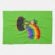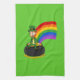 Cartoon leprechaun sitting on a pot of gold tea towel