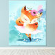 Cartoon Little Fox | Lovely Fox Floral Canvas Print