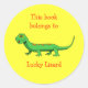 This customised bookplate is perfect for reptile lovers. It has a cartoon green lizard with orange spots and its tongue sticking out. It reads, "This book belongs to Lucky Lizard."