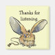 Jerby the long eared jerboa lives in Mongolia and is talking on his cell phone to Abrahamster in Yuma, Arizona. Isn't it great to have a friend that LISTENS? That's why this thank you magnet says "Thanks for listening." Abrahamster thinks Jerby is THE BEST listener on earth. I think he can hear without the cell phone.