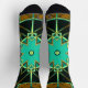 This funky mandala design features green, black, and yellow in a cartoon style. Trippy geometric visuals for the modern hippie or lover of vibrant colours!
