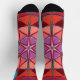 This funky mandala design features red, pink, and blue in a cartoon style. Trippy geometric visuals for the modern hippie or lover of vibrant colours!