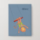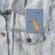 Cute personalized blue rectangular button for kids to collect . This one has a cartoon monkey trapeze artist to go along with our circus theme . Check our collection for more .