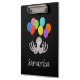 This Clipboard features illustration of funny cartoony Octopus smiling and holding eight colourful balloons in each tentacle. Nice and cute Back to School gift. Personalise your name on the front and back of the Clipboard.
