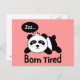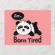 Cute cartoon panda sleeping on its belly with the funny caption "Born Tired". Panda looks tired easily because of the dark black patches around its eyes which looks like dark eye rings from lack of sleep. For anyone who likes adorable animals or funny cartoons.