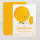 A foodie baby shower invitation with an orange white colour scheme. This invitation shows happy orange and kumquat characters that are smiling above the baby shower invitation’s words. Simply customise the words, add this invitation to your cart, and have a wonderful baby shower.