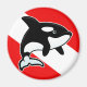 This cute Orca or Killer Whale swims in front of a dive flag. This will make a great gift for scuba divers who love Orcas.