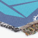 A quality printed throw has its advantages. This is a much finer weave throw than its loopier cousins, and though lighter, it is worth the investment for custom room accessorizing. The back is much prettier than the typical brown, and the fringe on the long sides very vivid, the selvage nicely done. Before photographing, I washed the throw in cold water, delicate, with a thicker woven throw the same size. On tumble dry low, this throw was dry in half the time as the other. This is a very practical quality if you use throws for furniture covers or to wrap up in frequently. The sleekness of the fabric makes it a great layer for accenting or protecting without the feeling of sitting on too much stuff. Perfect for napping or when you feel a light chill coming on. The color printing is beautiful and on this fabric, matched the design and color of my Photoshop image. This is an advantage for blending room fabrics and colors. The fringe on the short sides prints the colors from the design image and therefore varies from the side fringe. I streaked a white fractal line through the plaid pattern to give the illusion of weaving. This printed as crisp as an illusory thread, and put some white in the short side fringe, showing another advantage of print vs loomed- for artistic purposes, line lines, detail, and color integrity can be planned and preserved. My loomed throws have color limitations and more of a needlepoint texture. Print throws reproduce an exact image. The throw felt a little stiff straight out of the package, but this went away in the first delicate wash. Of course I searched the wash water for ink or bleeding and there was none.