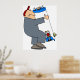 A cartoon style plumber carrying a water tank. This design looks really effective on these Poster