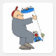 A cartoon style plumber carrying a water tank. This design looks really effective on these Stickers