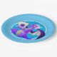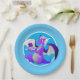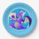 Cartoon Purple Dragon with Cake Blue Paper Plates