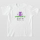 A cute cartoon monkey in shades of purple. Green vines around. Says ' monkey see, monkey do, this can be changed as desired.. A fun wild animal t-shirt .