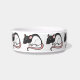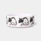 This is a heavy, durable bowl decorated with Tibbies of many colors, the perfect size for hungry/thirsty Tibs. The design is interesting and printing clear.